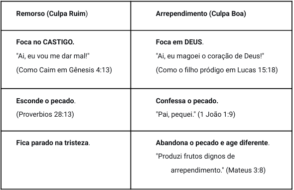 Qual é a diferença entre sentir remorso (culpa) e ter um arrependimento genuíno que leva ao abandono do pecado?